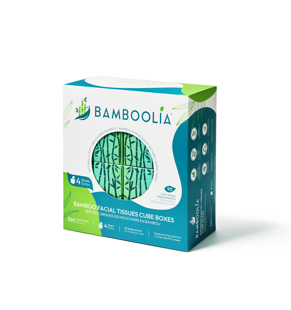 Bamboolia Facial Tissue Cube Box 90 Sheets [4 Pack]