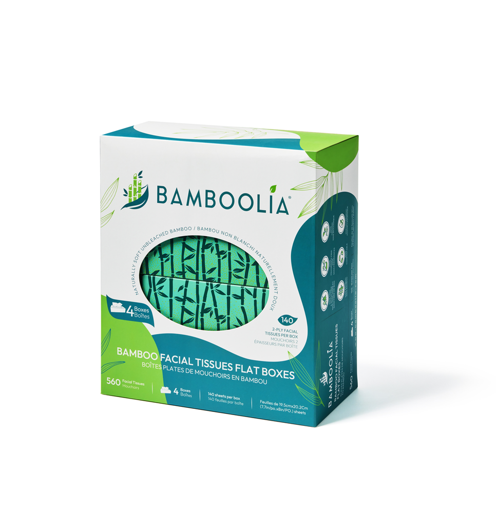 Bamboolia Facial Tissue Flat Box 140 Sheets [4 Pack]