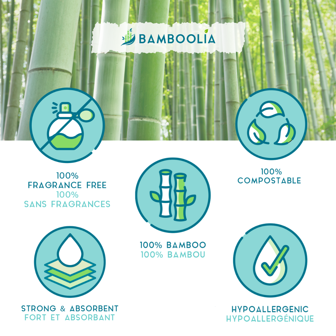 - 100% Bamboo, Hypoallergenic, Unbleached, Septic Safe, Compostable